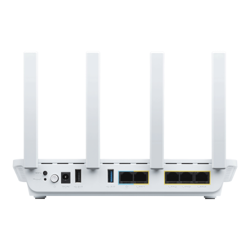 ASUS EBR63 – Expert WiFi. Tipo de conexión WAN: RJ-45. Banda Wi-Fi: Doble banda (2,4 GHz / 5 GHz), Estándar Wi-Fi: Wi-Fi 6 (802.11ax), Tasa de transferencia de datos WLAN (máx.): 2402 Mbit/s. Tipo de interfaz Ethernet LAN: Gigabit Ethernet, Ethernet LAN, velocidad de transferencia de datos: 10,100,1000 Mbit/s, Tecnología de cableado: 10/100/1000Base-T(X). Algoritmos de seguridad soportados: SSH, WPS. Tipo de producto: Router de sobremesa, Color del producto: Blanco, Indicadores LED: Actividad, LAN, Poder, WAN