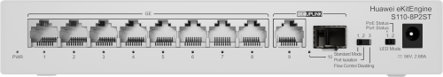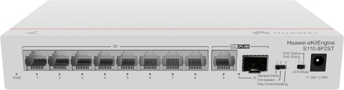 Huawei CloudEngine S110-8P2ST. Cantidad de puertos básicos de conmutación RJ-45 Ethernet: 8. Voltaje de entrada DC: 56 V. Energía sobre Ethernet (PoE). Montaje en rack