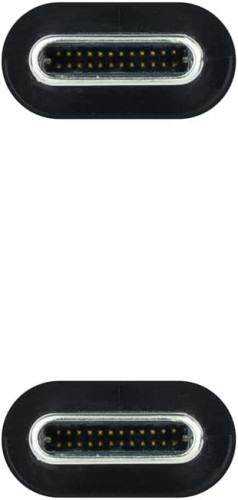 Nanocable cable Ideal para conectar su nuevo dispositivo móvil/tablet USB-C a un ordenador con USB-C. El cable ofrece hasta 5 amperios 100W de carga y lleva E-mark chip, con lo cual se puede usar para cargar su dispositivo móvil, tablet, portátil de hasta 100W etc. Velocidad de transferencia de datos de hasta 10Gbps.Longitud: 2 metros. Color: Negro. Normativas: RoHS. Test de funcionamiento: 100% testado.Compatible con video hasta 4k a 60Hz. Compatible con puertos con Thunderbolt 3. El conector USB tipo C es más fácil de usar que los conectores USB de generación anterior. Su diseño reversible le permite conectar dispositivos con cualquiera de sus caras hacia arriba.Inserte el cable de forma correcta siempre, sin equivocarse ni causar daños en el puerto. Este cable USB-C tiene certificación USB-IF, lo cual significa que cumple con todas las especificaciones sobre USB 3.1.