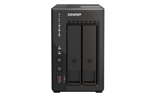 QNAP TS-253E. Tipos de unidades de almacenamiento admitidas: HDD & SSD, Interfaces de disco de almacenamiento soportados: M.2, Serial ATA III, Tamaños de almacenamiento en disco soportados: 2.5,M.2. Familia de procesador: Intel® Celeron®, Fabricante de procesador: Intel, Modelo del procesador: J6412. Memoria interna: 8 GB. Versión HDMI: 1.4b. Tipo de chasis: Torre, Tipo de enfriamiento: Activo, Color del producto: Negro