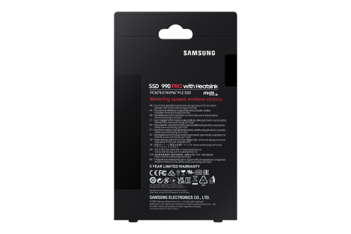 Samsung 990 Pro. SDD, capacidad: 4 TB, Factor de forma de disco SSD: M.2, Velocidad de lectura: 7450 MB/s, Velocidad de escritura: 6900 MB/s, Componente para: PC/Game console