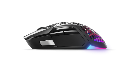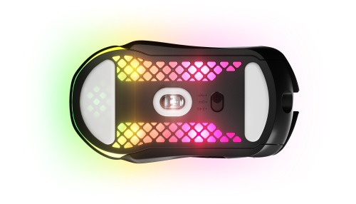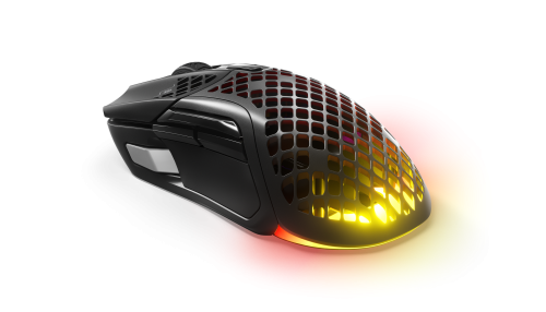 Steelseries Aerox 5 Wireless. Factor de forma: mano derecha. Tecnología de detección de movimientos: Óptico, Interfaz del dispositivo: RF Wireless + Bluetooth + USB Type-A, Resolución de movimiento: 18000 DPI, Tiempo de respuesta: 1 ms, Tipo de botones: Botones presionados, Cantidad de botones: 9, Tipo de desplazamiento: Rueda, Aceleración (máx.): 40 G. Iluminación de color: Multi. Fuente de energía: Baterías. Color del producto: Negro