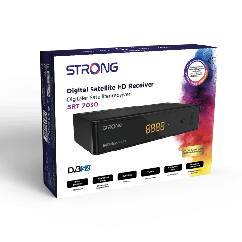 Strong SRT 7030. Color del producto: Negro. Ancho: 168 mm, Profundidad: 105 mm, Altura: 40 mm. Tecnología de conectividad: Alámbrico, Cables incluidos: Poder. Consumo energético: 5 W, Alimentación: Corriente alterna, Voltaje de entrada: 100 -240 V