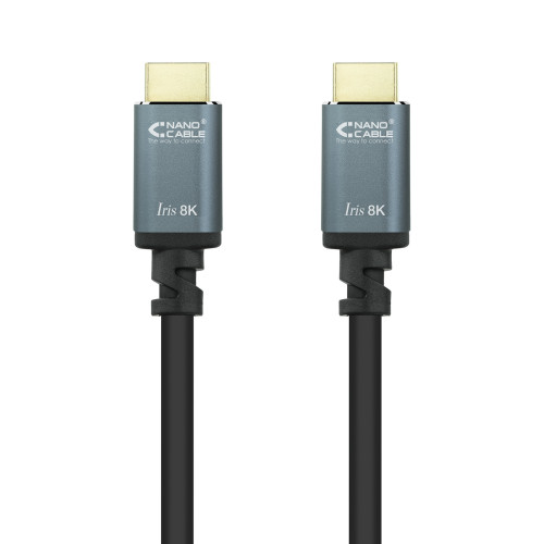 Cable HDMI 2.1 Iris 8K A/M-A/M Negro 3.0 M- Cable HDMI 2.1 con conector tipo A macho en ambos extremos- Conectores de aluminio de alta calidad blindados en oro – Soporta resoluciones de video de hasta 8K@60Hz y 4K@120Hz- Ancho de banda hasta 48Gbps- Soporta eARC (mejora respecto ARC)- Compatible con HDR (High Dynamic Range)- Permite 3D- Compatible con hasta 32 canales de audio digital no comprimido – Múltiple apantallamiento para la máxima reducción de posibles interferencias- Retrocompatible con las especificaciones HDMI anteriores- Longitud: 3.0 m- Color: Negro- Normativas: RoHS- Test de Funcionamiento: 100% testado