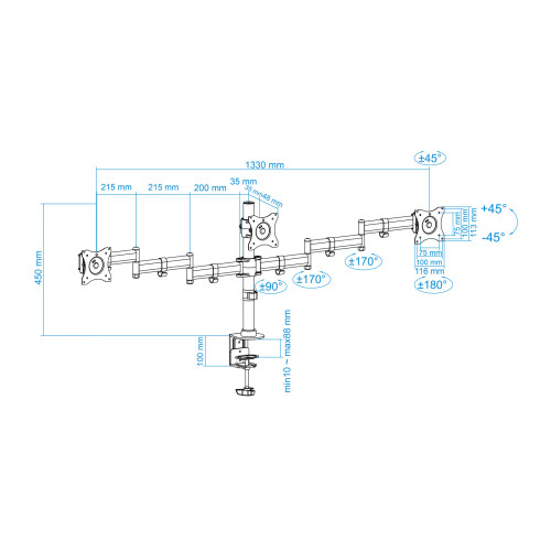 Soporte de fijación en mesa para pantallas planas (entre 13″ y 27″) y hasta un máximo de 8 kg de peso por brazoFabricado en metal de alta resistencia, siempre con la calidad de los productos TooQ