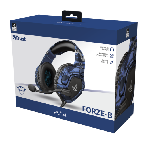 Auriculares gaming exclusivamente para PlayStation®4 con micrófono plegable y diadema ajustableCon licencia oficial para PS4™Diseñados específicamente para este sistema, los auriculares para gaming Forze de Trust para PlayStation®4 consiguen que te sumerjas completamente en el juego. Como producto con licencia oficial para PS4™, el uso de los auriculares da como resultado una experiencia definitiva de gaming con PlayStation®4. Sea cual sea el juego que elijas, prepárate para vivir grandes sorpresas.Sonido potenteDisfruta de un sonido nítido y potente, tanto si estás en zona de guerra, en un estadio o en un circuito de carreras. Gracias a las potentes unidades de altavoz de 50 mm de los auriculares, el sonido de las sesiones de gaming será más envolvente que nunca.Se ajusta para tu comodidadLas suaves almohadillas circumaurales garantizan que los auriculares sean cómodos, incluso después de horas de juego. Utiliza el micrófono para dar instrucciones claras a tus compañeros de equipo o doblarlo fácilmente cuando quieras jugar sin conexión.Robustos y elegantesCon una diadema reforzada ajustable, los auriculares no solo son cómodos, sino también resistentes. Y como producto con licencia oficial para Sony, su potente diseño combina perfectamente con la imagen del sistema PlayStation®4.Solo hay que enchufarlosActiva los auriculares simplemente conectándolos al controlador inalámbrico DUALSHOCK®4. El cable trenzado de nailon de 1,2 m proporciona un espacio más que suficiente para disfrutar de una cómoda experiencia de gaming. Y, gracias a los botones de mando en el cable, puedes ajustar el volumen de los auriculares o silenciar el micrófono sin tener que acceder a un menú.