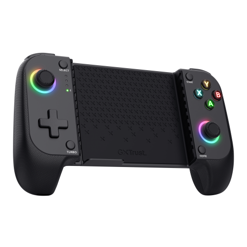 Trust GXT 735 Mylox. Tipo de dispositivo: Gamepad, Plataformas de juego soportadas: Android, iOS, Botones de función control para gaming: Botón de inicio, Botón de encendido, Botón Seleccionar, Botón turbo. Tecnología de conectividad: Inalámbrico, Interfaz del dispositivo: Bluetooth, Conector USB: USB Tipo C. Color del producto: Negro, Longitud de cable: 1 m. Fuente de energía: Batería, Tipo de batería: Integrado, Tecnología de batería: Ión de litio. Sistemas operativos móviles soportados: Android, iOS