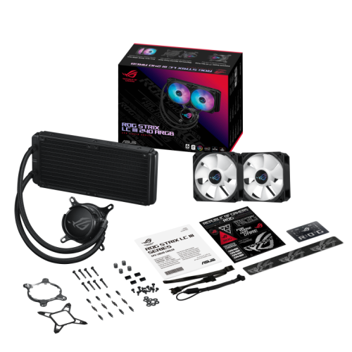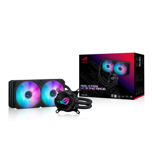ASUS ROG Strix LC III 240 ARGB. Tipo: Kit de refrigeración líquida, Diámetro de ventilador: 12 cm, Nivel de ruido (alta velocidad): 36 dB, Máximo flujo de aire: 70,38 cfm. Color del producto: Negro