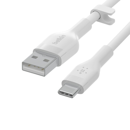 Belkin BOOST↑CHARGE Flex. Longitud de cable: 1 m, Conector 1: USB A, Conector 2: USB C, Versión USB: USB 2.0, Color del producto: Blanco