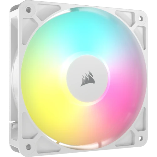 Corsair RS120 ARGB. Tipo: Ventilador, Diámetro de ventilador: 12 cm, Velocidad de rotación (mín.): 420 RPM, Velocidad de rotación (máx.): 2100 RPM, Nivel de ruido (baja velocidad): 10 dB, Nivel de ruido (alta velocidad): 36 dB, Máximo flujo de aire: 72,8 cfm, Presión de aire mínima: 0,2 mmH2O, Presión máxima de aire: 4,15 mmH2O. Color del producto: Blanco