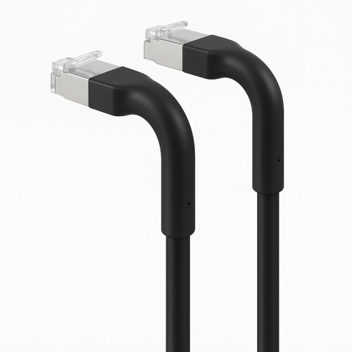 En cada extremo, dos conectores macho RJ45 cuentan con fundas flexibles y sin enganches que protegen los pestillos y le permiten doblar el cable suavemente hasta el ángulo deseado, lo que reduce la tensión mecánica en los conectores. La construcción blindada U/FTP con 4 pares trenzados en 32 AWG ofrece un excelente manejo sin comprometer la calidad de la señal, lo que hace que el cable sea adecuado para conectar enrutadores, conmutadores, paneles de conexión, PC y dispositivos de red en entornos con niveles normales de interferencia.