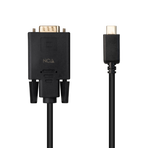 Cable conversor USB-C a VGA, con conector USB-C macho en un extremo y conector VGA macho en el otro.