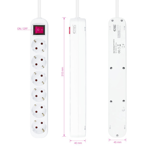 Nanocable Regleta de enchufes de 6 tomas con interruptor, 1.4 metros Blanca
