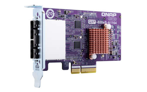 QNAP QXP-800ES-A1164. Interfaz de host: PCIe, Interfaz de salida: Mini-SAS, Factor de forma de la tarjeta de expansión: Perfil bajo. Color del producto: Azul, Utilizar con: NAS / Storage server, Tipo de enfriamiento: Pasivo. Tasa de transferencia de datos (max): 32 Gbit/s. Sistema operativo Windows soportado: Windows 10,Windows 7,Windows 8,Windows 8.1, Sistema operativo de servidor soportado: Windows Server 2012 R2,Windows Server 2016,Windows Server 2019. Ancho: 119,7 mm, Profundidad: 68,9 mm, Altura: 17,2 mm