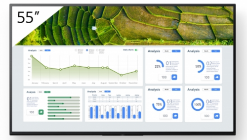 Sony FW-55BZ30L. Diseño de producto: Pantalla plana para señalización digital. Diagonal de la pantalla: 139,7 cm (55"), Tecnología de visualización: LCD, Resolución de la pantalla: 3840 x 2160 Pixeles, Brillo de pantalla: 440 cd / m², Tipo HD: 4K Ultra HD. Wifi. Horas de funcionamiento (horas/días): 24/7. Sistema operativo instalado: Android. Color del producto: Negro