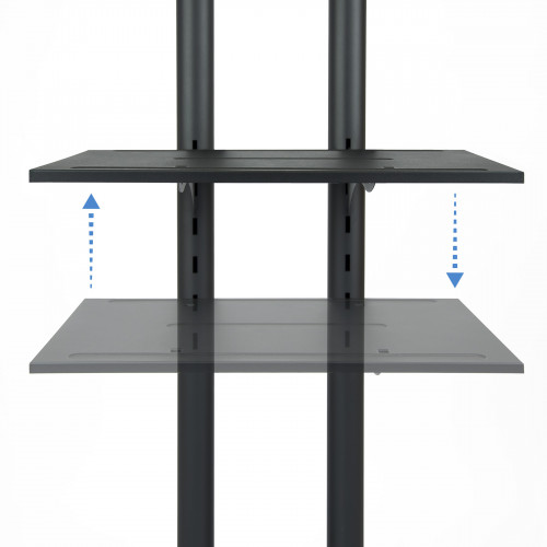 Soporte de suelo para pantallas planas de 37" a 70" con bandeja para DVD. Soporta hasta un máximo de 50 kg.Fabricado en metal de alta resistencia, siempre con la calidad de los productos TooQ.