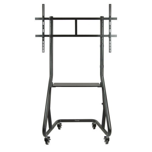 Soporte de suelo con ruedas/patas para pantallas de 60" - 105" con bandeja. Soporta hasta un máximo de 100 kg.Fabricado en metal de alta resistencia, siempre con la calidad de los productos TooQ.
