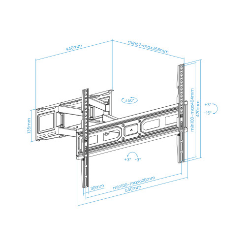 ¡Este soporte será imprescindible para ti! Fija tu pantalla a la pared y gana espacio. Tiene una capacidad de carga de 40 kg y un diseño elegante en color negro. ¡Disfruta de una instalación limpia y ordenada!