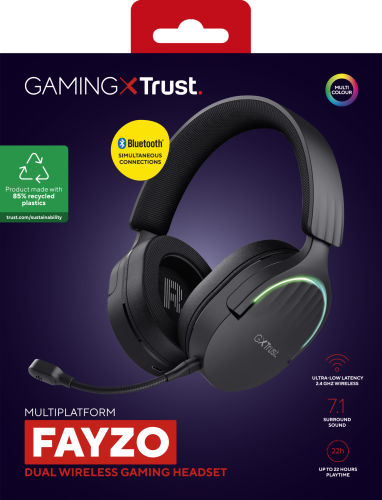Trust GXT 491 Fayzo. Tipo de producto: Auriculares. Tecnología de conectividad: Inalámbrico y alámbrico, Bluetooth. Uso recomendado: Juego. Frecuencia de auricular: 20 - 20000 Hz. Longitud de cable: 1,2 m. Peso: 290 g. Color del producto: Negro