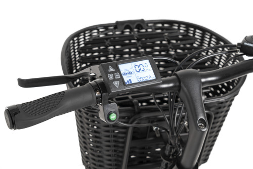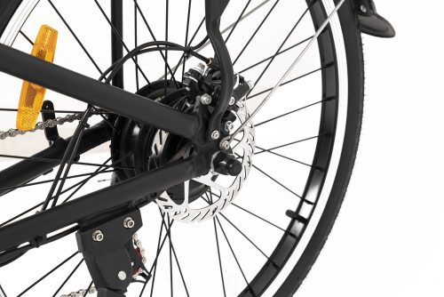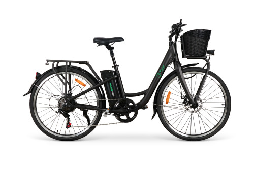 La clásica Potencia: 250W Autonomía: 35-40 km Batería de litio extraible de 36V/10Ah Pedaleo asistido por motor eléctrico Carga completa: 4-6h Ruedas de 26 pulgadas Cambio Shimano de 6 velocidades Freno delantero y trasero de disco Sillín confortable tipo ciudad Velocidad máxima: 25 km/h Cuadro de aluminio Horquilla delantera de magnesio Luz frontal y trasera Pantalla con velocímetro y nivel de batería Peso: 25 Kg Carga máxima: 125 Kg
