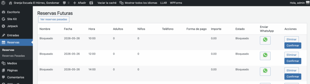 – Puede desactivar franjas horarias o días completos desde el mismo calendario (modo admin)
